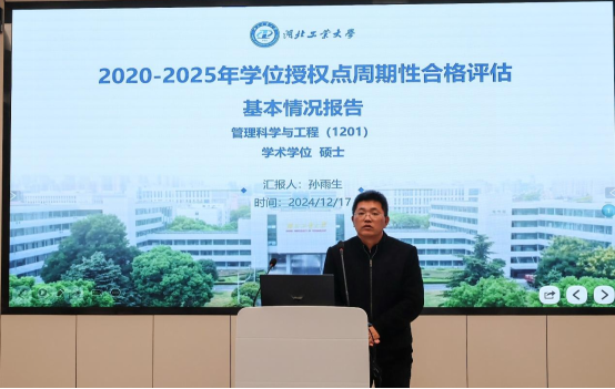 孙雨生教授详细汇报了管理科学与工程硕士学位授权点周期性合格评估工作方案、指标体系及建设情况。专家们对学位点前期发展和建设工作、报告规范性给予了高度评价,并针对学位点发展现状进行了质询提问和深入评议,对招生规模、学术交流、毕业条件、研究方向提出了进一步建设建议。